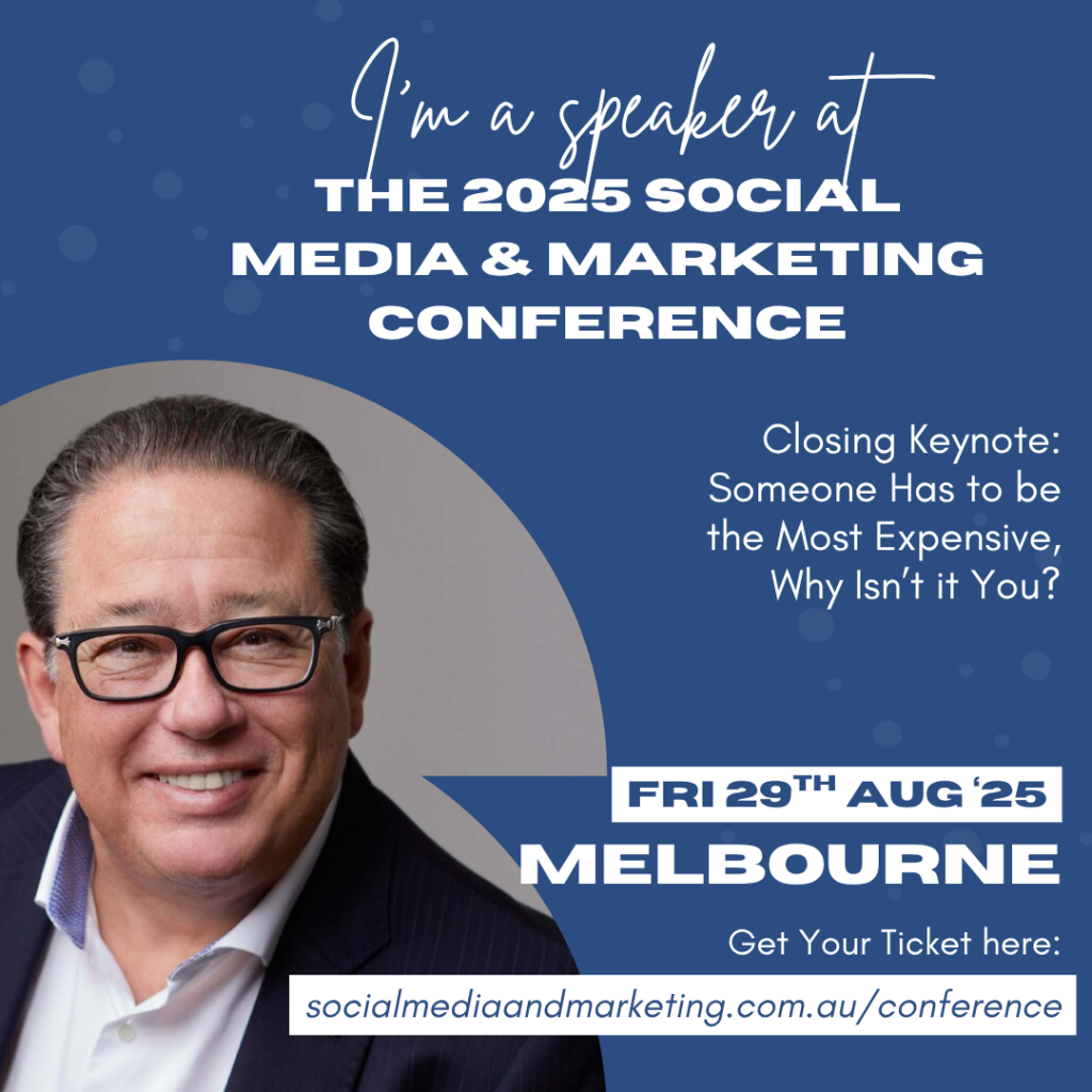 Hey Folks – if you’re looking to give your marketing and social media a crash course update – check out this event coming up in Melbourne in August. I have the pleasure of doing the closing keynote, and I’ll be talking about my favourite topic – Someone has to be the most expensive why not make it you?